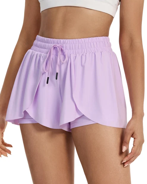 Women’s Flowy Running Shorts Plain 2 IN 1 Drawstring Waist Shorts Gym Yoga Athletic Workout Tennis Sport Skorts Skirts Ladies