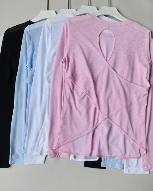 Backless Loose Yoga T-Shirt – Breathable Long Sleeve Active Top
