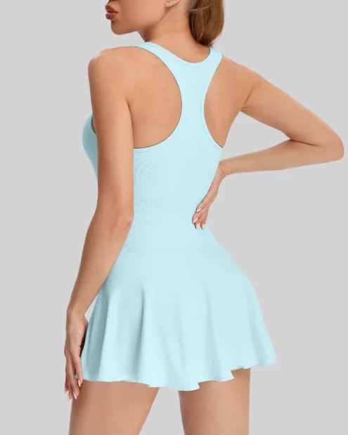Seafoam Halter Neck Tennis Dress – Open Back Sport Skort