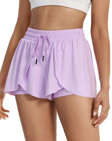 Women’s Flowy Running Shorts Plain 2 IN 1 Drawstring Waist Shorts Gym Yoga Athletic Workout Tennis Sport Skorts Skirts Ladies