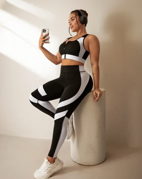Plus-Size Ribbed Crop Top & High-Waist Leggings Set
