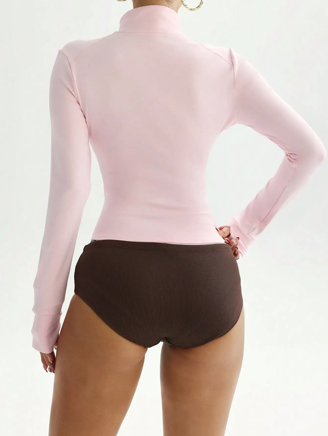 Sculpting Stretch Fit Adjustable Zip Stand Collar Sporty Contrast Design Soft, Flexible Performance Fabric Studio-to-Street Style |