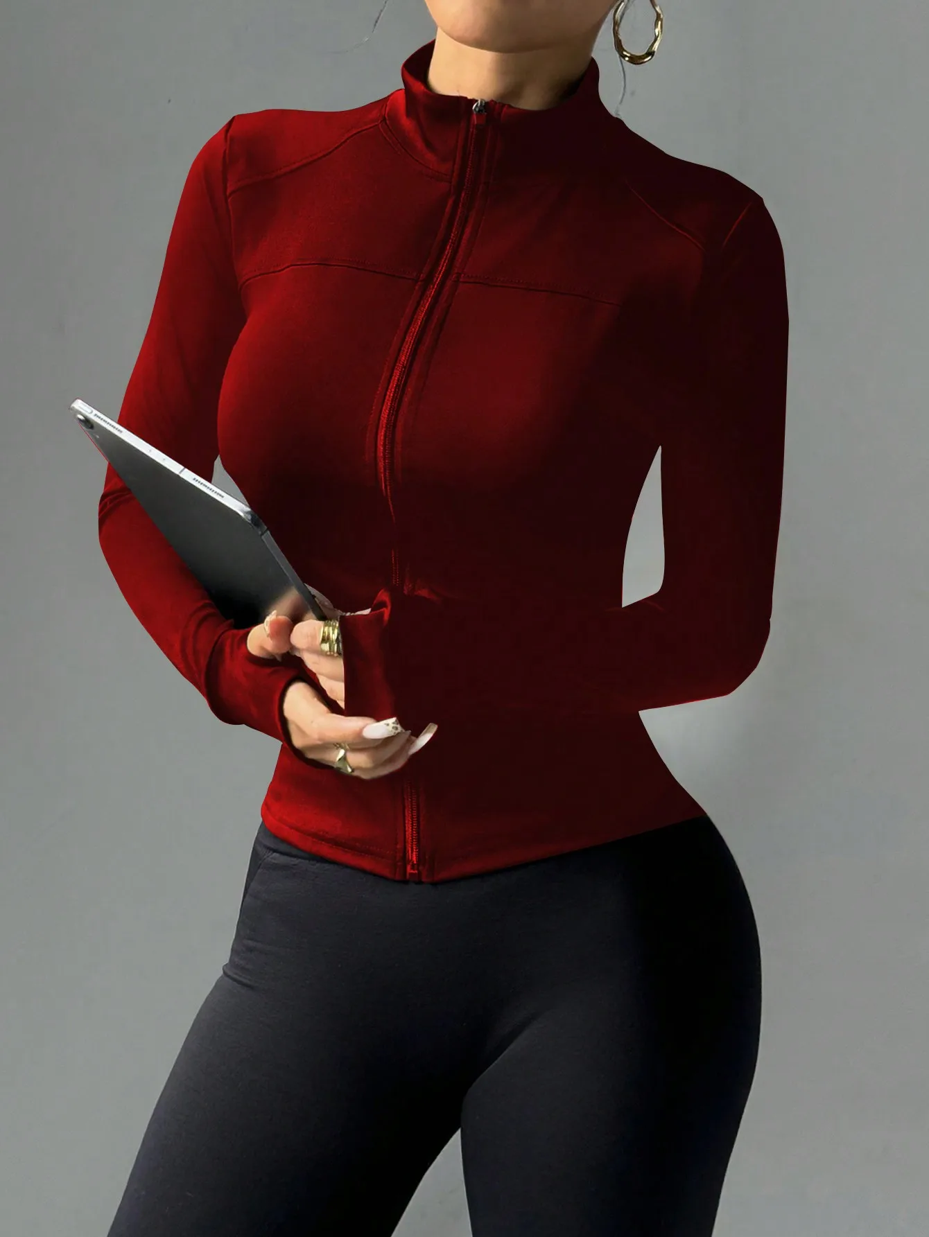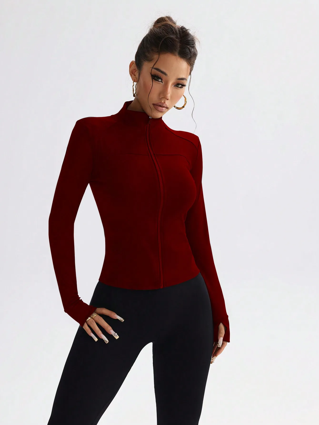 Stay stylish and comfortable during every workout with this slim-fit zip-up yoga jacket. Designed to hug your curves while allowing full mobility, it features a full-length front zipper for easy on/off and adjustable coverage. Stretchy, breathable fabric makes it perfect for yoga, running, gym sessions, or casual layering in cooler weather.