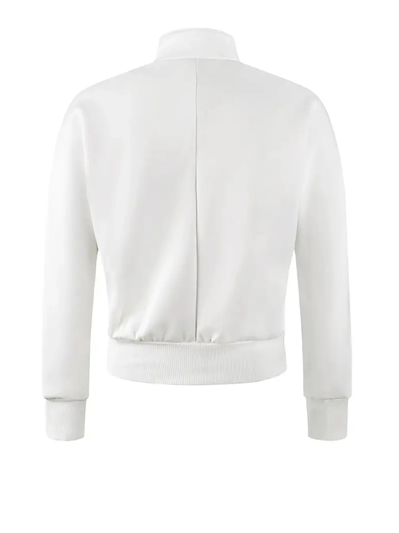 Includes a long-sleeve jacket with a stand-up collar and matching mid-waist drawstring pants for a complete, stylish look.